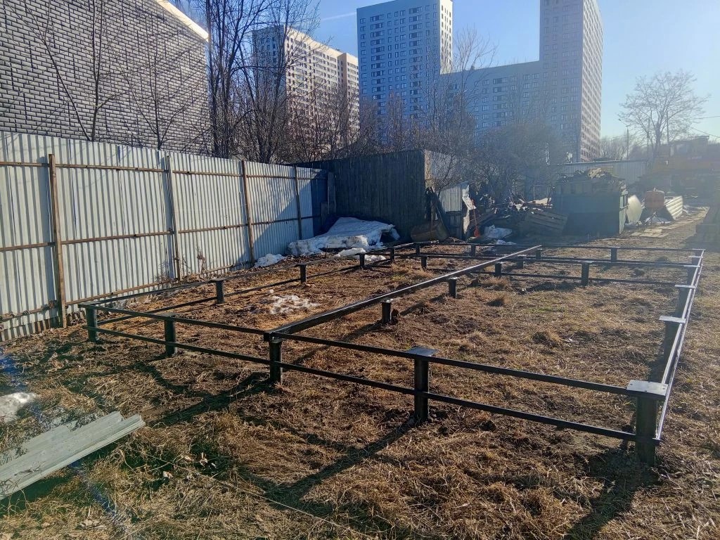 —Смонтировали 24 винтовые сваи с обвязкой профтрубой 20х40 для строительства дома 6х8м из оцилиндрованного бревна
